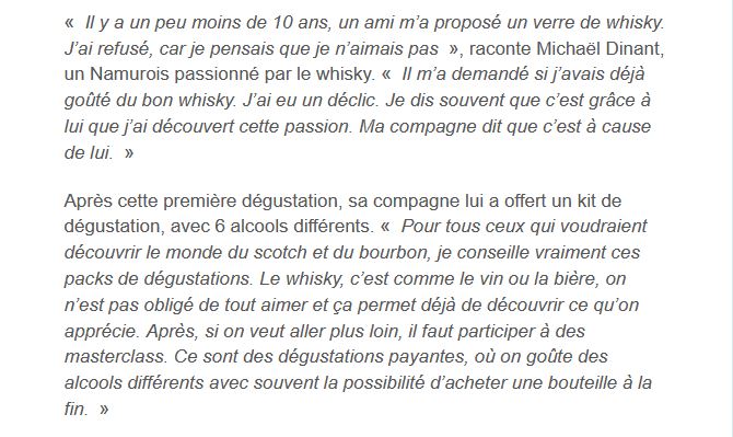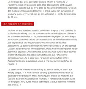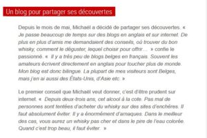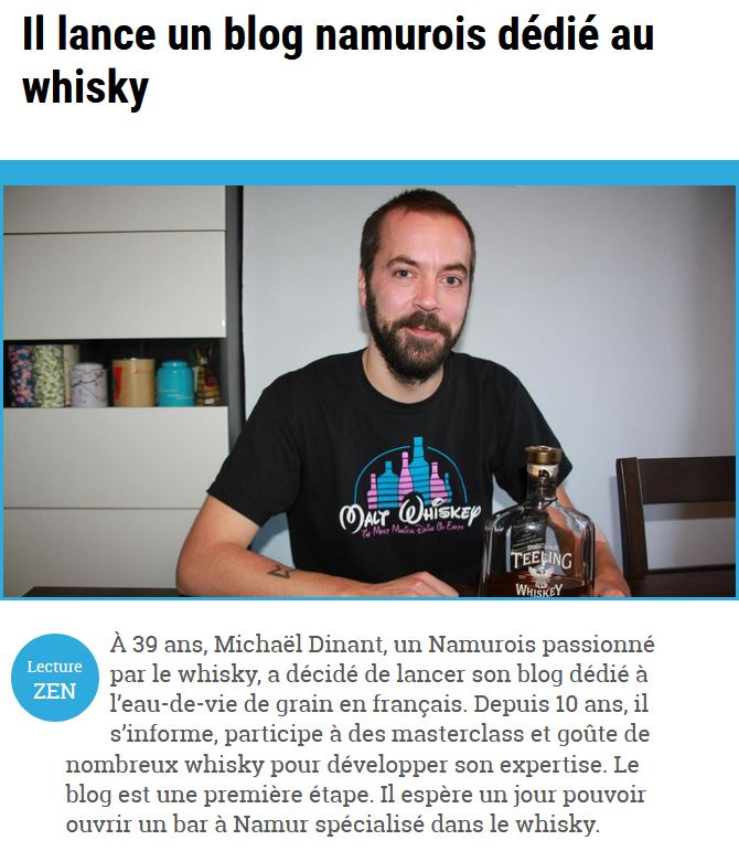 Joli coup de pub, un premier article consacré à ce blog a été publié dans la Meuse à l’adresse https://www.lameuse.be/307376/article/2018-11-14/il-lance-un-blog-namurois-dedie-au-whisky