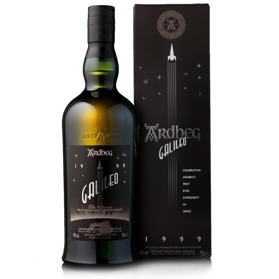 Amateurs de whisky tourbé, je vous présente aujourd’hui l’Ardbeg Galileo… Le fameux whisky que l’on a envoyé dans l’espace afin d’étudier l’impact de la gravité sur sa maturation. Enfin, celui que vous pourrez boire n’a pas été dans l’espace hein, il s’agit ici juste du même whisky qui a été embouteillé pour célébrer cet évènement peu banal. Vieilli en ex-fûts de bourbon (premier remplissage) et de Marsala, il titre à 49%. Alors, est-ce qu’il va nous emmener vers l’infini et au-delà? On voit ca tout de suite.