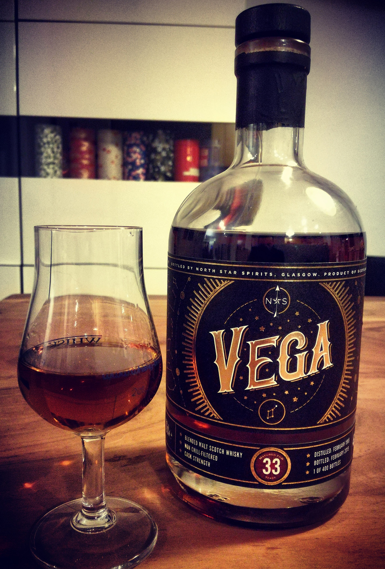 Ce Vega 33yo ne fait pas exception à une certaine règle… Car chez North Star Spirits, ils ont pris l’habitude de nous épater avec d’excellents blends! Voire même de véritables pépites (spécialement dans leur collection Vega). On trouve ici un autre fabuleux assemblage de whiskies ayant vieilli en fûts de chêne américains et européens. Vu la couleur, pas besoin de préciser de quel type, de plus les notes de dégustation le confirmeront plus bas 😛 Et il y a vieilli durant 33 ans. Vu les arômes qu’il dégage on a l’impression d’avoir du plus vieux whisky que cela dans ce blend d’exception. Une édition limitée à 400 bouteilles seulement! On voit le reste avec les notes 😉